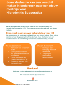 Wil je meer informatie of je hiervoor aanmelden? Mail dan naar onderzoeksteamhuidziekten@amsterdamumc.nl